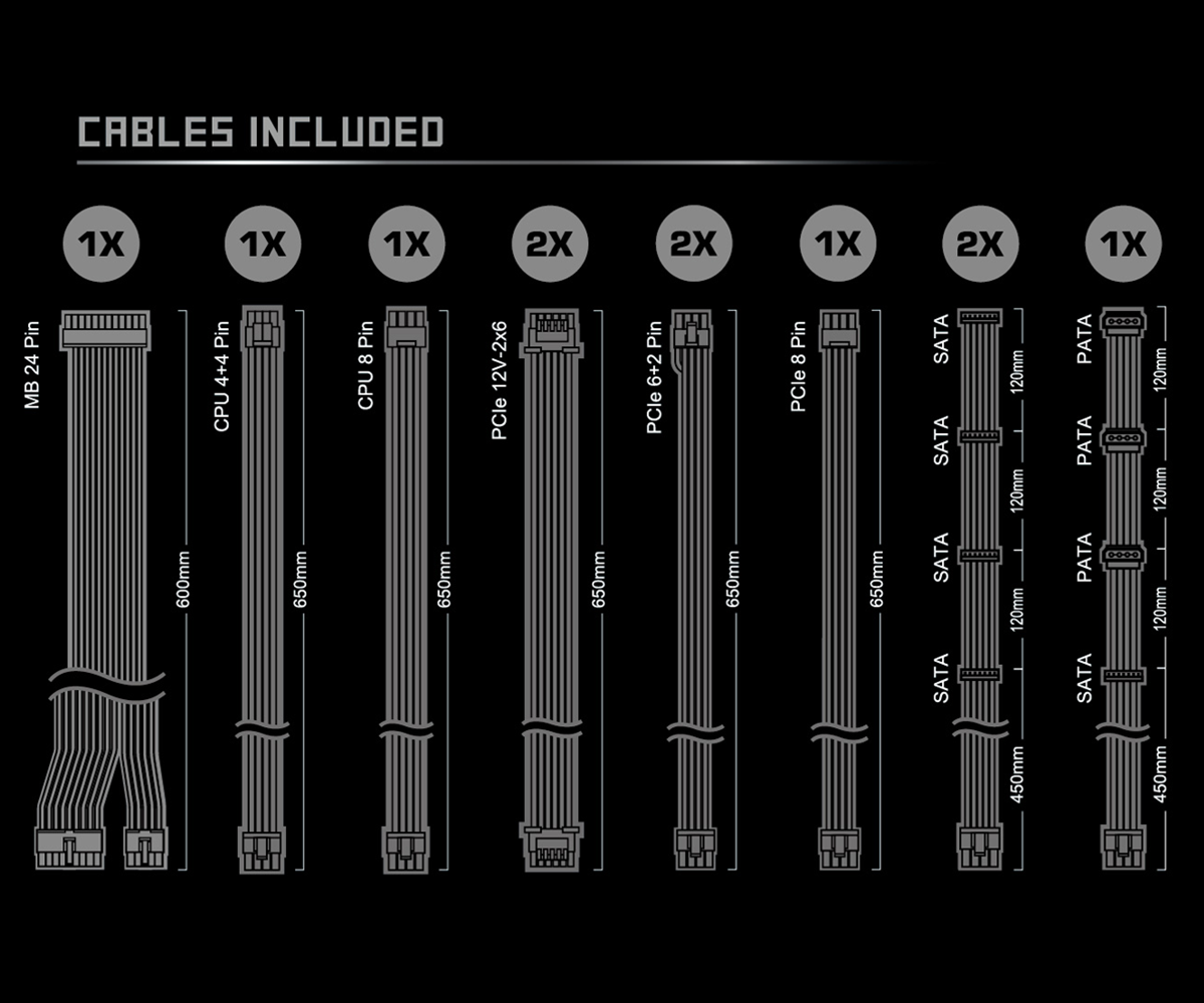 Thiết kế Full Modular (Cáp rời hoàn toàn): Bạn chỉ cần cắm những sợi dây cáp thực sự cần thiết. Điều này không chỉ giúp không gian bên trong case máy tính cực kỳ gọn gàng mà còn tối ưu hóa luồng khí lưu thông.